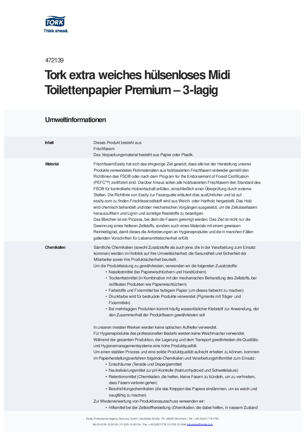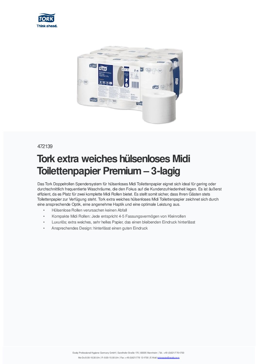 Das Tork 472139 Toilettenpapier mit 63.3 Meter je Rolle (550 Blatt) enthält bis zu 5 mal mehr Papier als eine herkömmliche Rollen. Es ist kernlos und erspart Ihnen somit die Entsorgung von leeren Pappkernen. Die Großrollen sind sehr eng gewickelt, dadurch passt wesentlich mehr Papier auf die Rolle als bei Standard Kleinrollen Toilettenpapier.